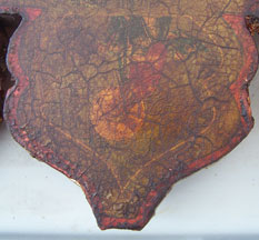 If you want something that looks truly ancient after using a crackle glaze and antique glaze plus the coating of raw linseed oil, I suggest you place the object in either strong hot sunlight for about 24 hours, or failing hot sunlight, I suggest you place the object in a pre heated warm oven (gas mark 1-2) for about 3-4 hours, this will cause the crackle to lift in an irregular manner, see the picture below. I cannot give hard and fast rules about this process, therefore I advise that you check the work periodically.
